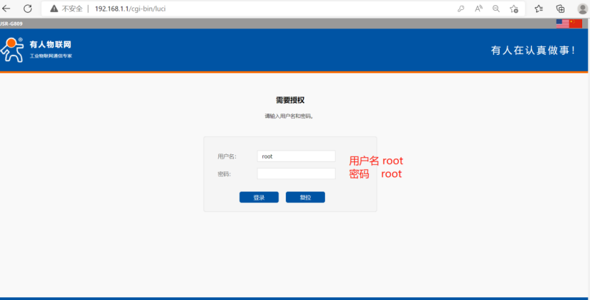 2、在瀏覽器上輸入192.168.1.1,用戶(hù)名和密碼都是root,登錄G809的內(nèi)置網(wǎng)頁(yè)。