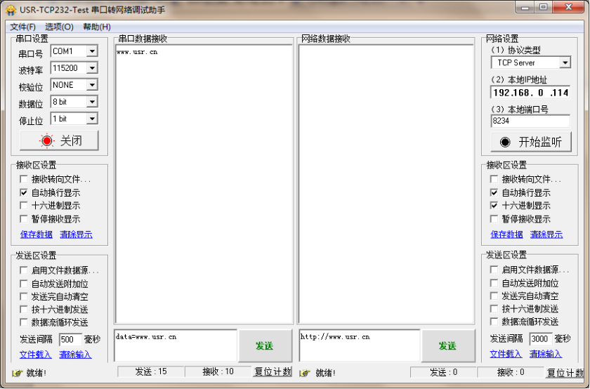 重啟模塊,完成啟動后,向模塊的串口發(fā)送數(shù)據(jù)data=http://wy2006.cn,則會從模塊的串口接收到http://wy2006.cn。