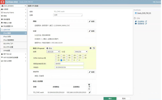 注意:飛塔服務器的對端標識必須設置為IP,服務器和路由器設置一致即可,客戶端(即USR-G817)的對端標識可以不寫。