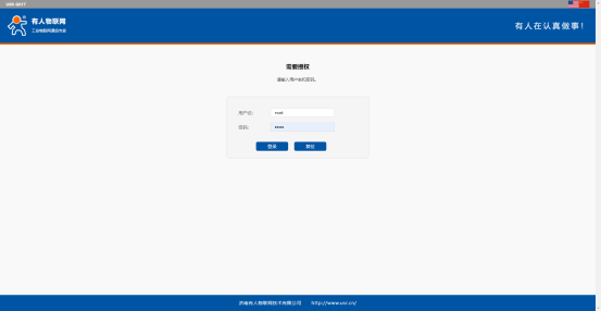 1、USR-G817接入電源適配器,lan口通過網(wǎng)線連接電腦,輸入192.168.1.1打開內(nèi)置網(wǎng)頁,用戶名密碼都為root,點擊登錄。
