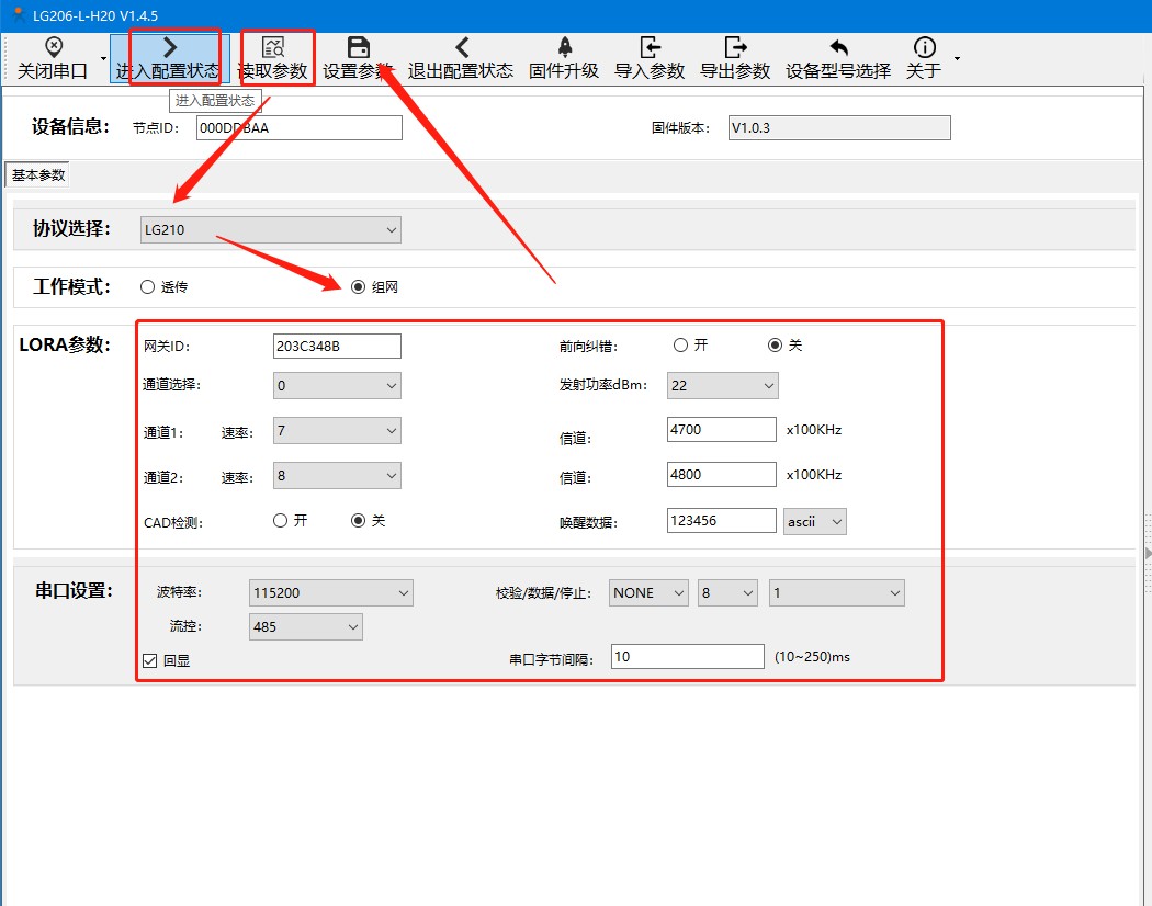 8、LG210重新獲取參數(shù),在節(jié)點(diǎn)信息中可以看到添加的LG206已組網(wǎng)成功。