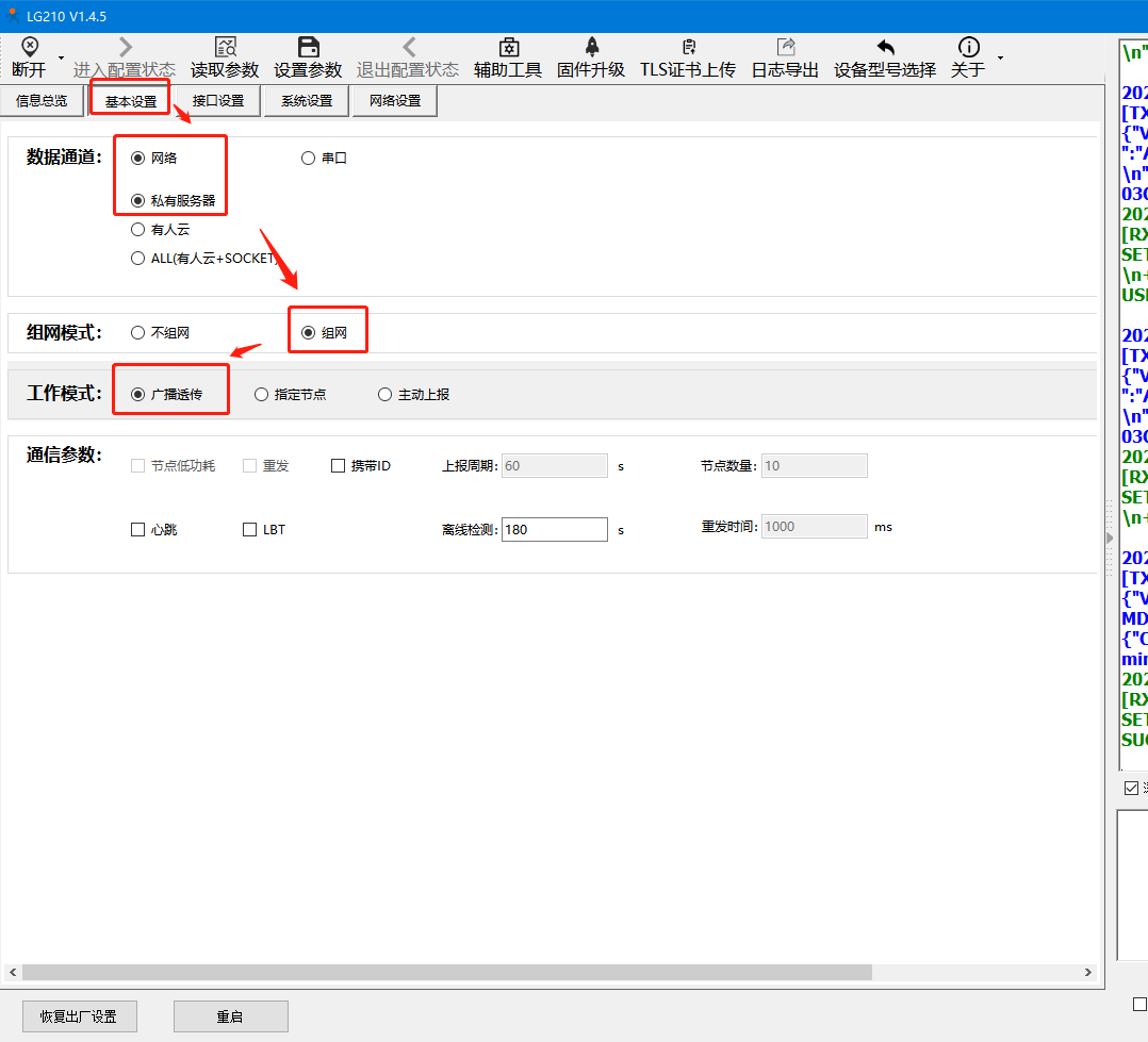 組網(wǎng)模式選擇“組網(wǎng)”;