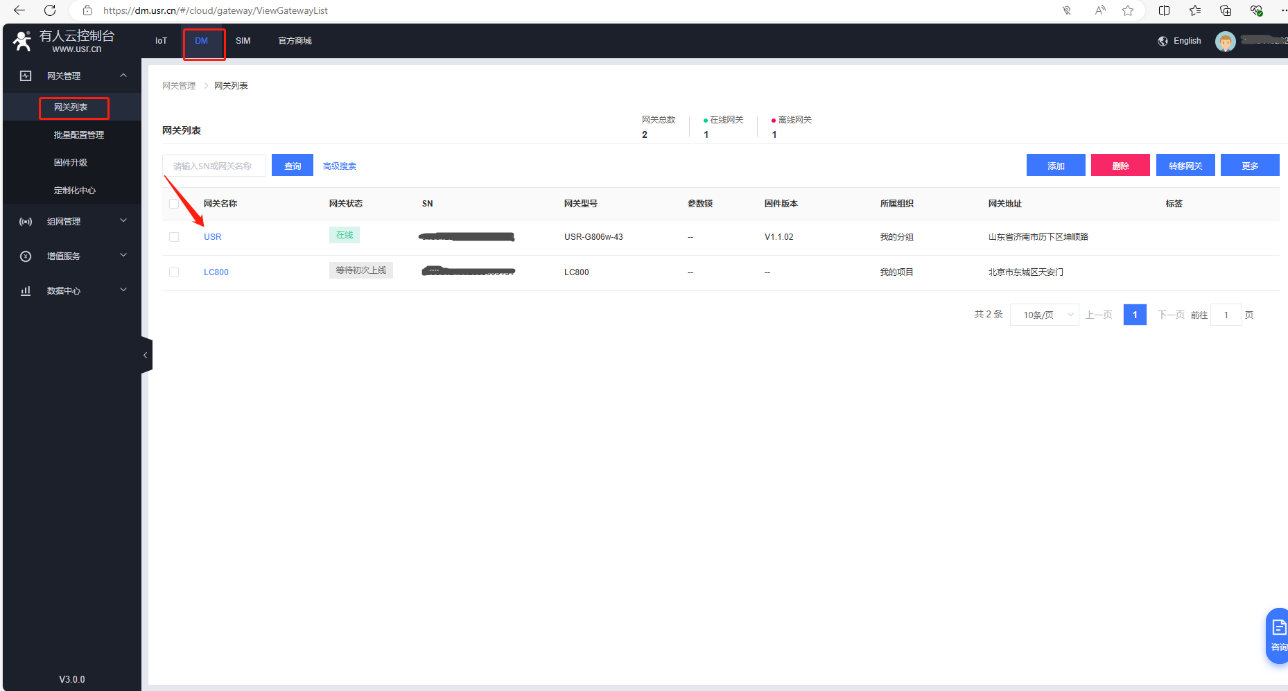 (1)DM平臺,點擊數(shù)據(jù)中心,點擊網(wǎng)關(guān)上下線可以查看網(wǎng)關(guān)的上下線記錄。