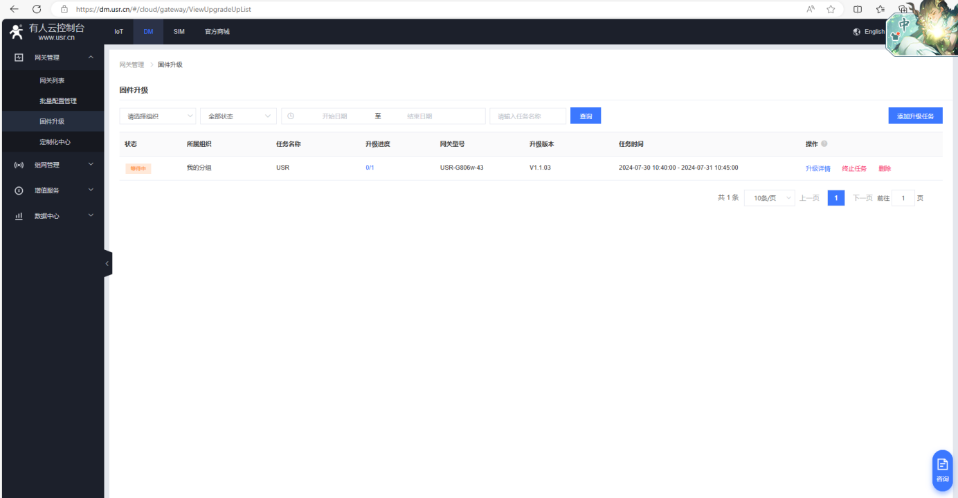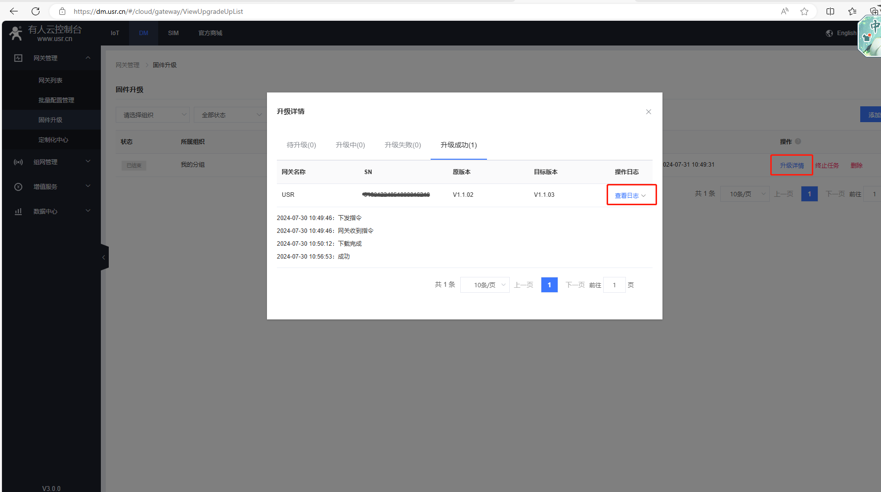 9、DM平臺,點擊網(wǎng)關(guān)列表,點擊固件升級步驟頁面