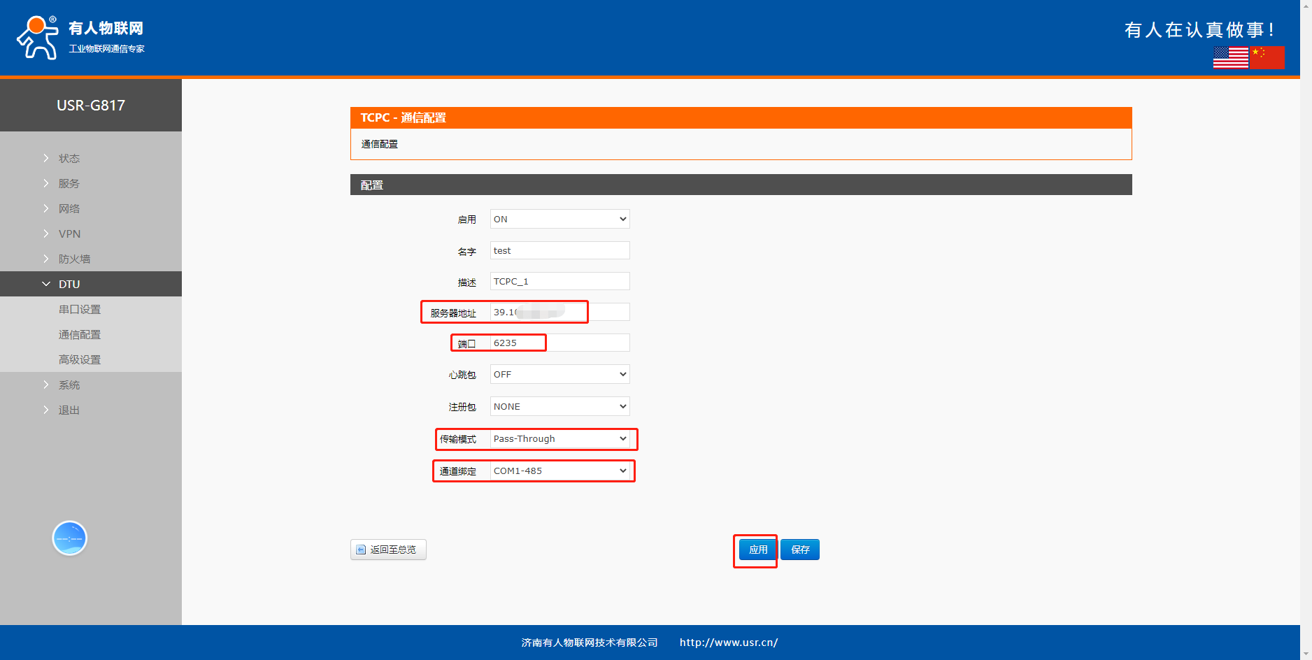 USR-G817連接遠(yuǎn)程服務(wù)器進(jìn)行數(shù)據(jù)通訊