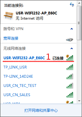 3.模塊默認(rèn)狀態(tài)下,連接到模塊無(wú)線(xiàn)信號(hào).