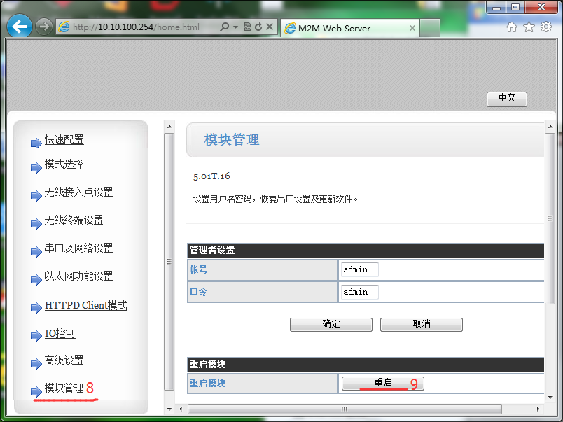 9.參數(shù)設(shè)置完成,將模塊重啟使參數(shù)生效。