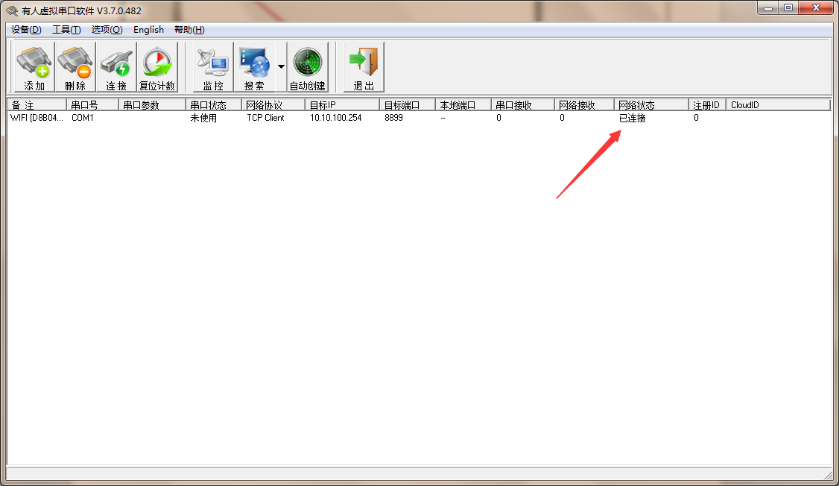 3:com1網(wǎng)絡(luò)狀態(tài)為已連接,說明網(wǎng)絡(luò)通信OK。