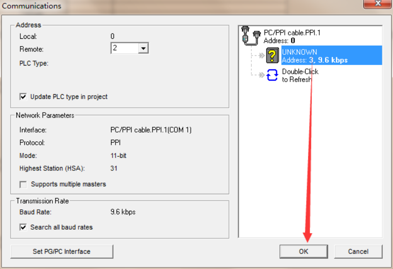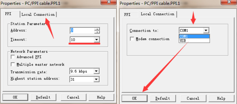 點(diǎn)擊設(shè)置PG/PC接口,選擇PC/PPI,點(diǎn)擊屬性,將超時時間設(shè)置大點(diǎn),設(shè)置10S或者100S.然后點(diǎn)擊本地連接選擇剛才虛擬的串口com1.