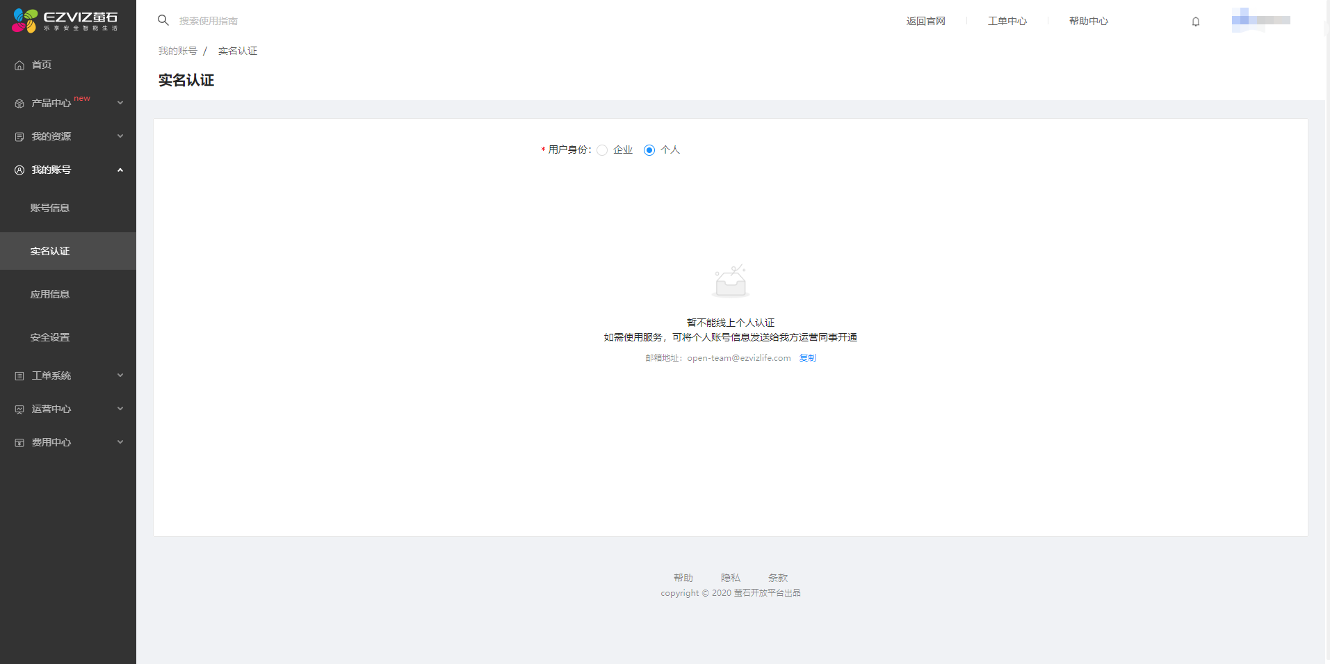1、在瀏覽器打開螢石云的網(wǎng)址:https://open.ys7.com/mobile/download.html如果沒有螢石云賬號請注冊2、點擊創(chuàng)建應(yīng)用按鈕,需要進(jìn)行實名認(rèn)證公司認(rèn)證和個人認(rèn)證二選一即可。
