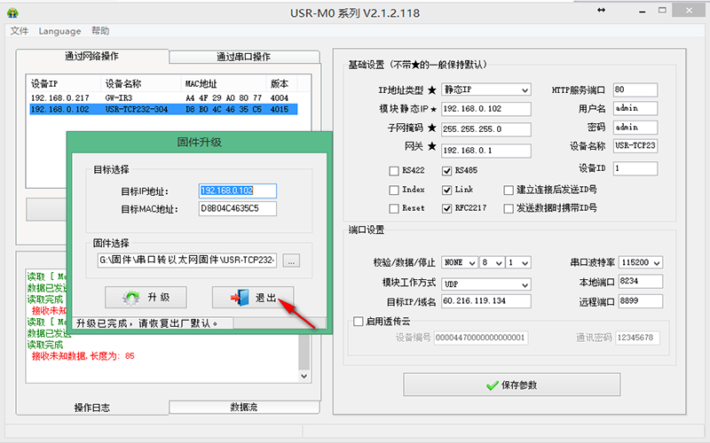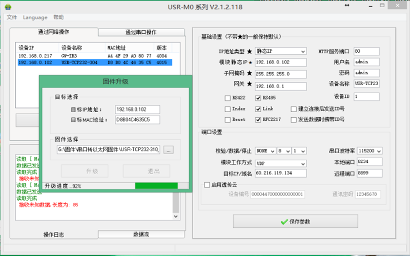 1、將M0系列的產(chǎn)品,加入路由器中,升級使用的電腦也加入同一個路由,使用配置軟件搜索M0。