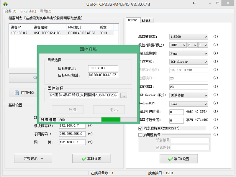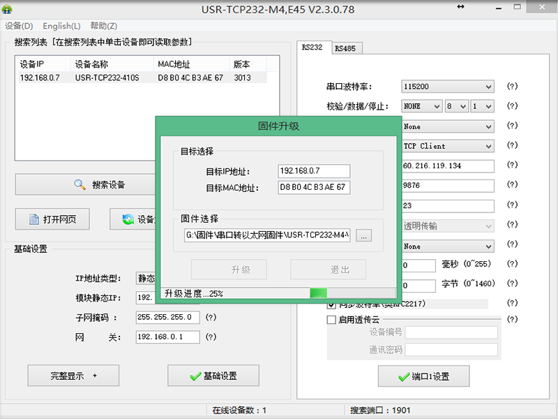 1、將M4系列的產(chǎn)品,加入路由器中,升級(jí)使用的電腦也加入同一個(gè)路由,使用配置軟件搜索M4。