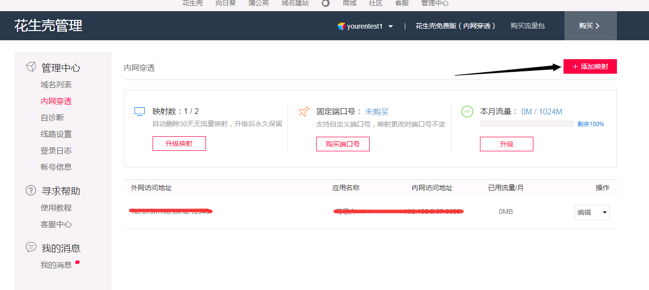 4. 添加映射: 內(nèi)網(wǎng)穿透--->添加映射