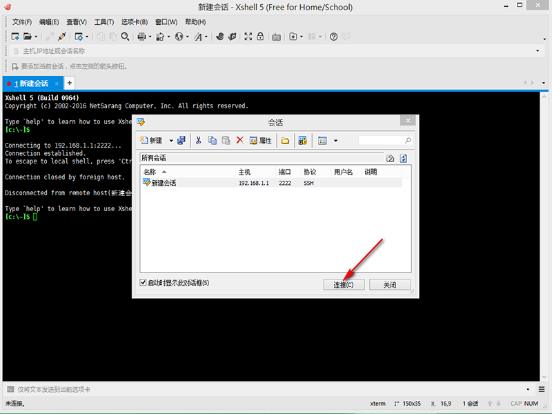 6、協(xié)議選為ssh 主機(jī)填寫192.168.1.1 端口號(hào)填寫2222,點(diǎn)擊“確定”