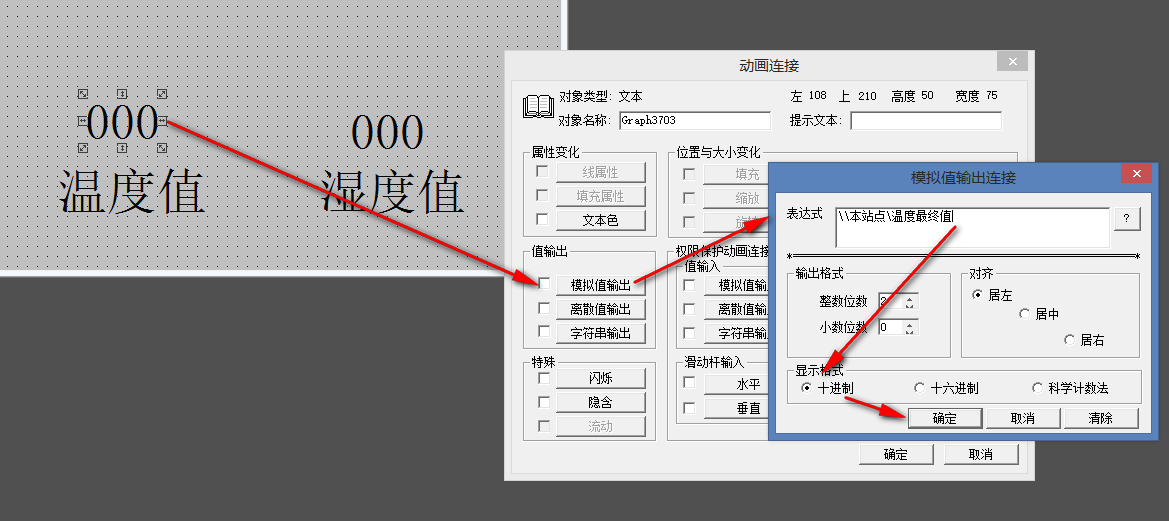 4.9新建需要的字體,然后將文本與數(shù)據(jù)值進行連接,然后點擊“文件”,選擇“全部保存”,然后將畫面切換到 View,點擊“畫面”,選擇畫面名“監(jiān)控溫濕度”,然后讀取到溫度和濕度值在頁面上。