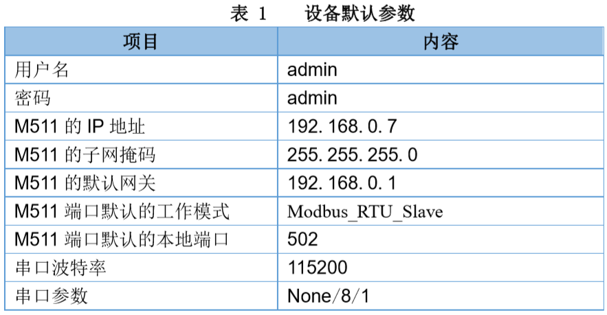 二、設(shè)備默認(rèn)參數(shù)