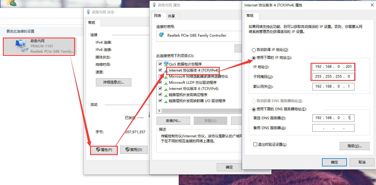 3.給電腦設(shè)置靜態(tài)IP,要與511的IP在同一個網(wǎng)段(511默認(rèn)參數(shù)見表1)。