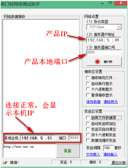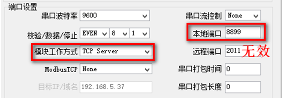 我司產(chǎn)品設(shè)置為TCP SERVER,本地端口必須是固定值(自定義),不能是0