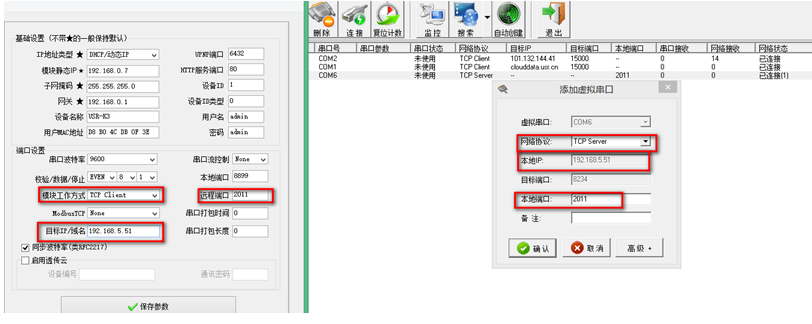 我司產(chǎn)品設(shè)置為TCP client,本地端口可以任意設(shè)置