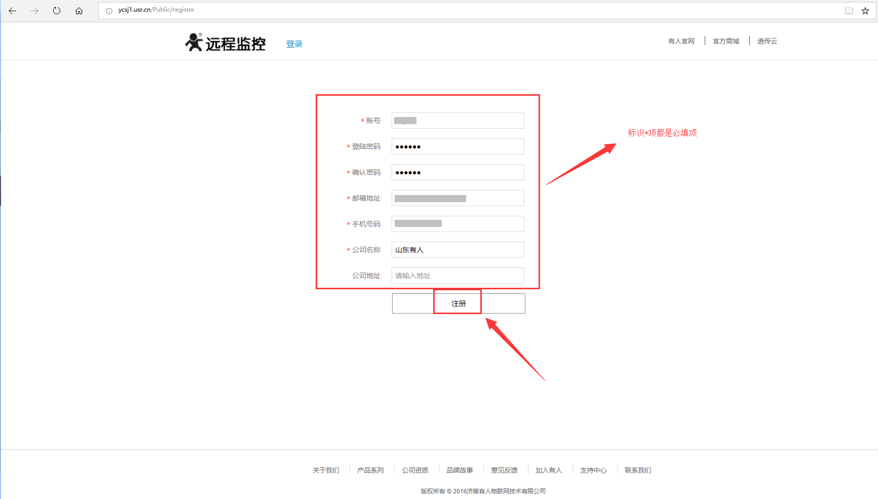 開啟使用此功能之前,需要登錄http://ycsj1.usr.cn遠(yuǎn)程監(jiān)控后臺注冊賬號,