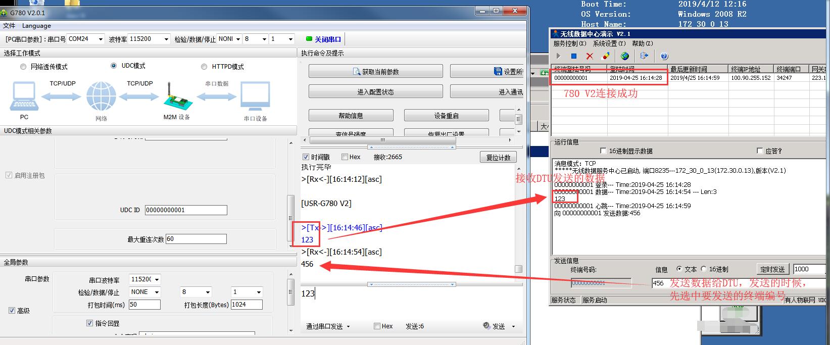注意:服務(wù)器IP和端口號(hào)需要和上面的780 V2上設(shè)置的IP和端口號(hào)一致。服務(wù)器類型也需要和780 V2設(shè)置軟件上的連接類型一致。所以這里端口號(hào)設(shè)置8235,服務(wù)器類型選擇TCP。但是我這個(gè)服務(wù)器是租的騰訊云的服務(wù)器,172.30.0.13這個(gè)IP經(jīng)過(guò)映射就是94.191.7.252這個(gè)IP地址,所以我的服務(wù)器IP填寫的是服務(wù)器的內(nèi)網(wǎng)IP