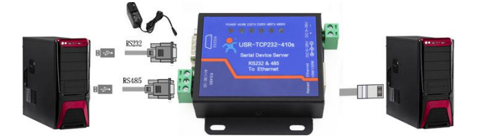 USR-TCP232-410S *2、標(biāo)準(zhǔn)的電源適配器*2、USB轉(zhuǎn)232串口線*2、測試軟件USR-TCP232-Test-V1.3、設(shè)置軟件