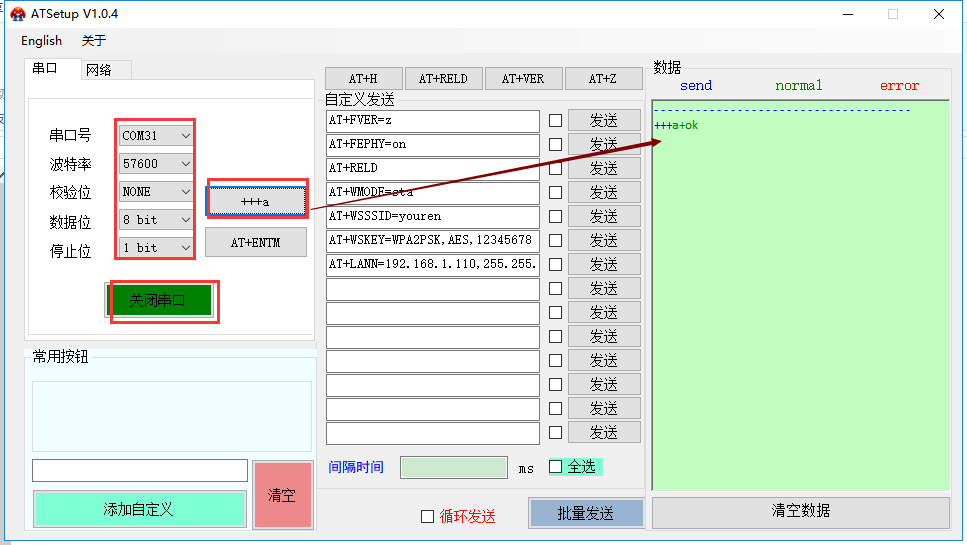 1、用usb轉(zhuǎn)232串口線把w610接到電腦的串口上,選擇正確的串口參數(shù),發(fā)送+++a,進入配置狀態(tài)