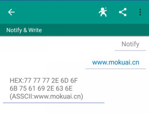 我們點擊第一個Service進去,然后選擇最下面DEBUG選項點擊進入,我們首先點擊下面的NOTIFY,點擊之后變?yōu)?/span>STOP NOTIFY,說明進入監(jiān)聽狀態(tài),此時我們可以通過串口接收數(shù)據(jù),要想發(fā)送數(shù)據(jù),點擊左面的向上的符號,里面有WRITE一項,我們可以點開后輸入發(fā)送的數(shù)據(jù),點擊SEND后,串口那邊將會收到你發(fā)送的數(shù)據(jù)。
