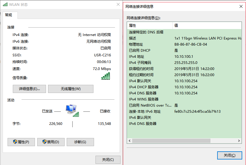 (2) 連接成功后或者電腦獲取到IP:10.10.100.1