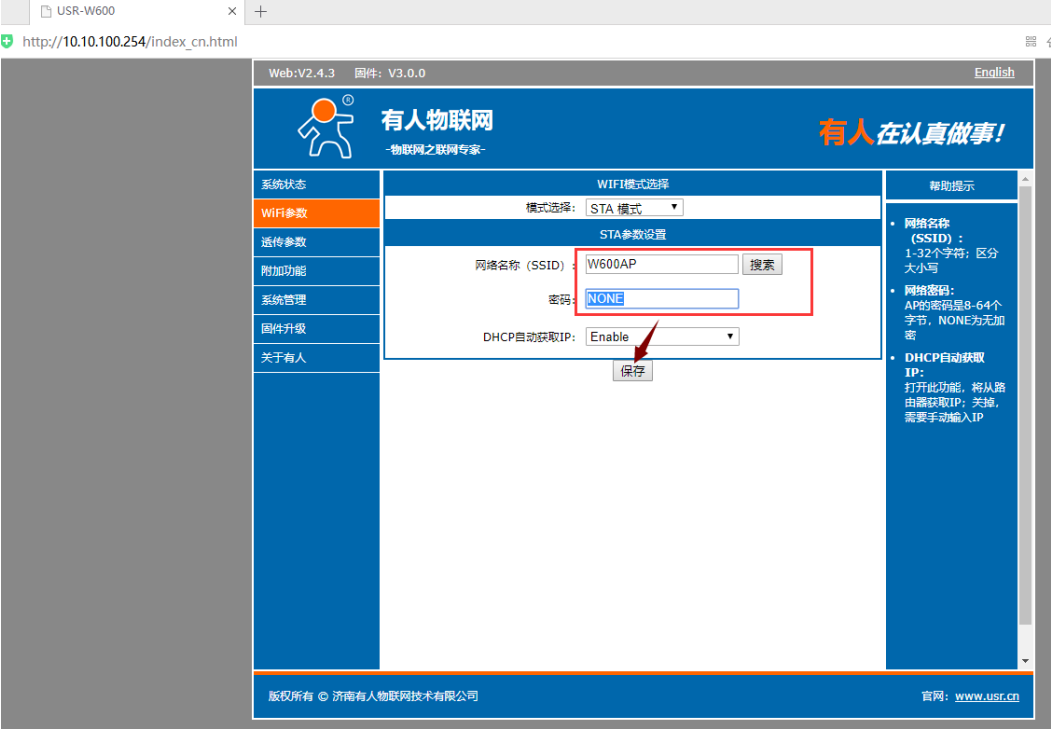 a.同樣的,先加入模塊的WIFI網(wǎng)絡(luò),登錄10.10.100.254.