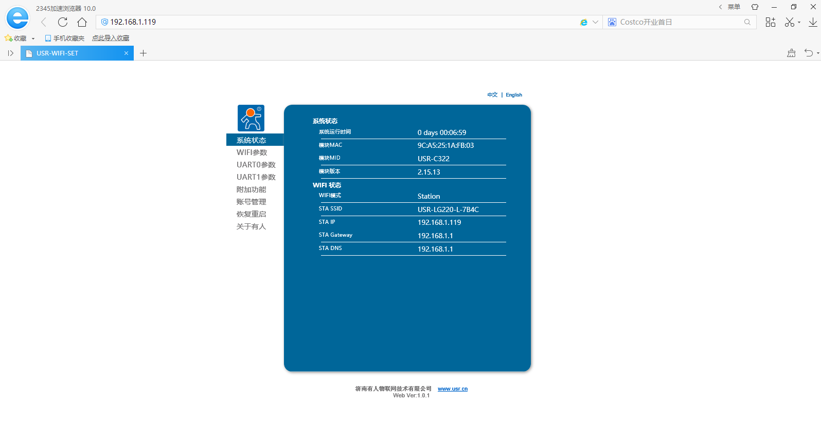 4) 點擊“打開”,便可快速登入模塊的內(nèi)置網(wǎng)頁進行配置參數(shù)。