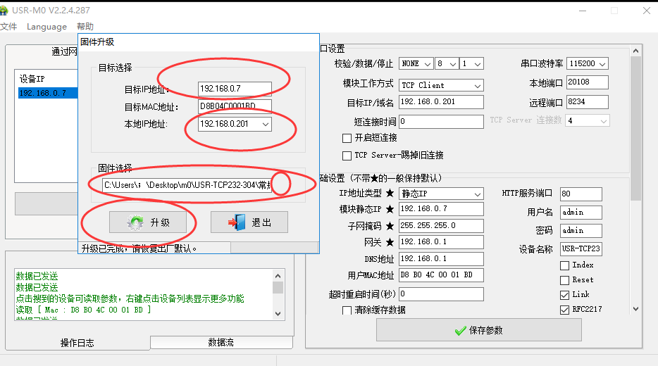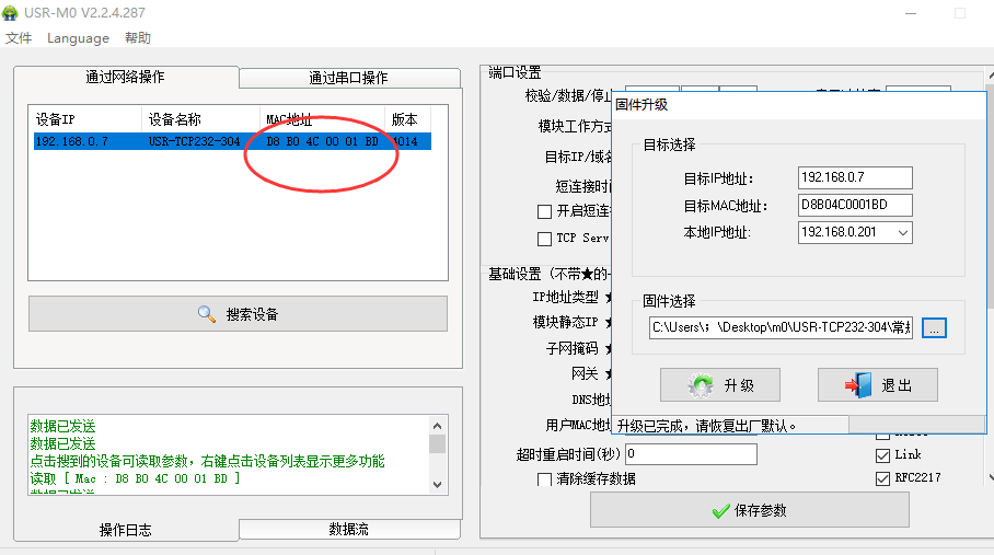 2. 目標(biāo)mac地址是模塊的mac地址(一定升級時對好)