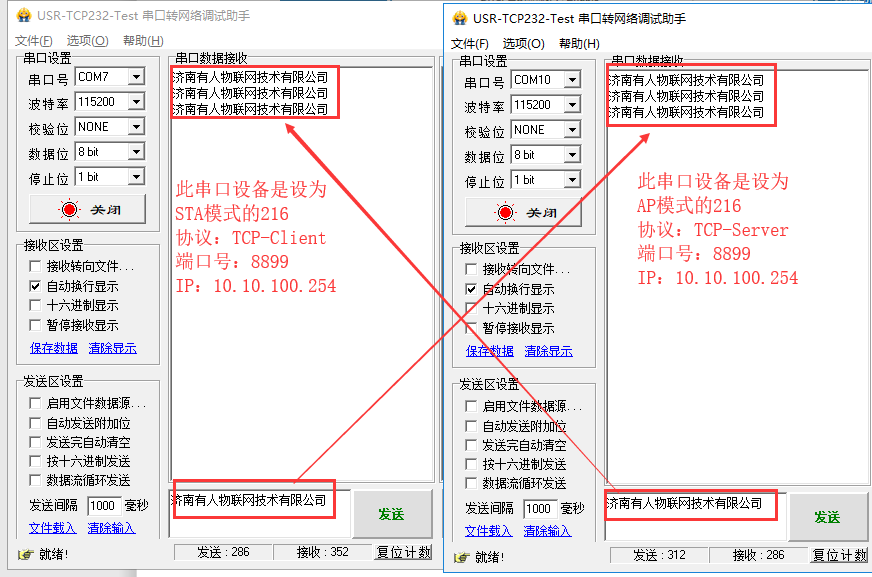 1、設(shè)STA模式的216做SERVER,因?yàn)檫B接的是設(shè)為AP模式的216,所以IP地址是AP模式的216分配的,可以用AT指令軟件查詢IP地址。