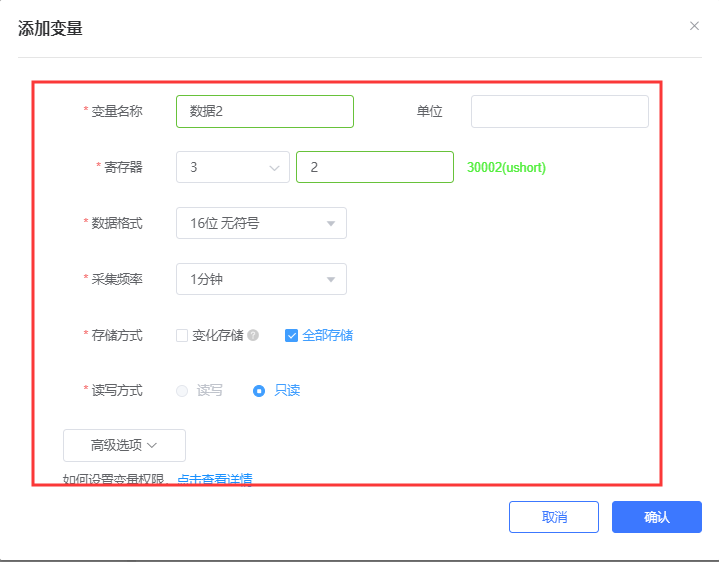 以這個為例,操作為只讀就是功能碼為03則就是4,寄存器地址16進制轉(zhuǎn)換為10進制就是0000,然后+1;所以組態(tài)地址就是40001