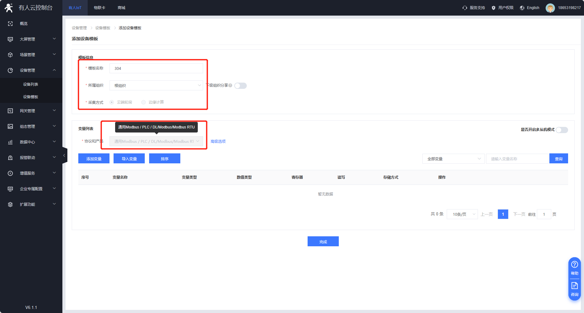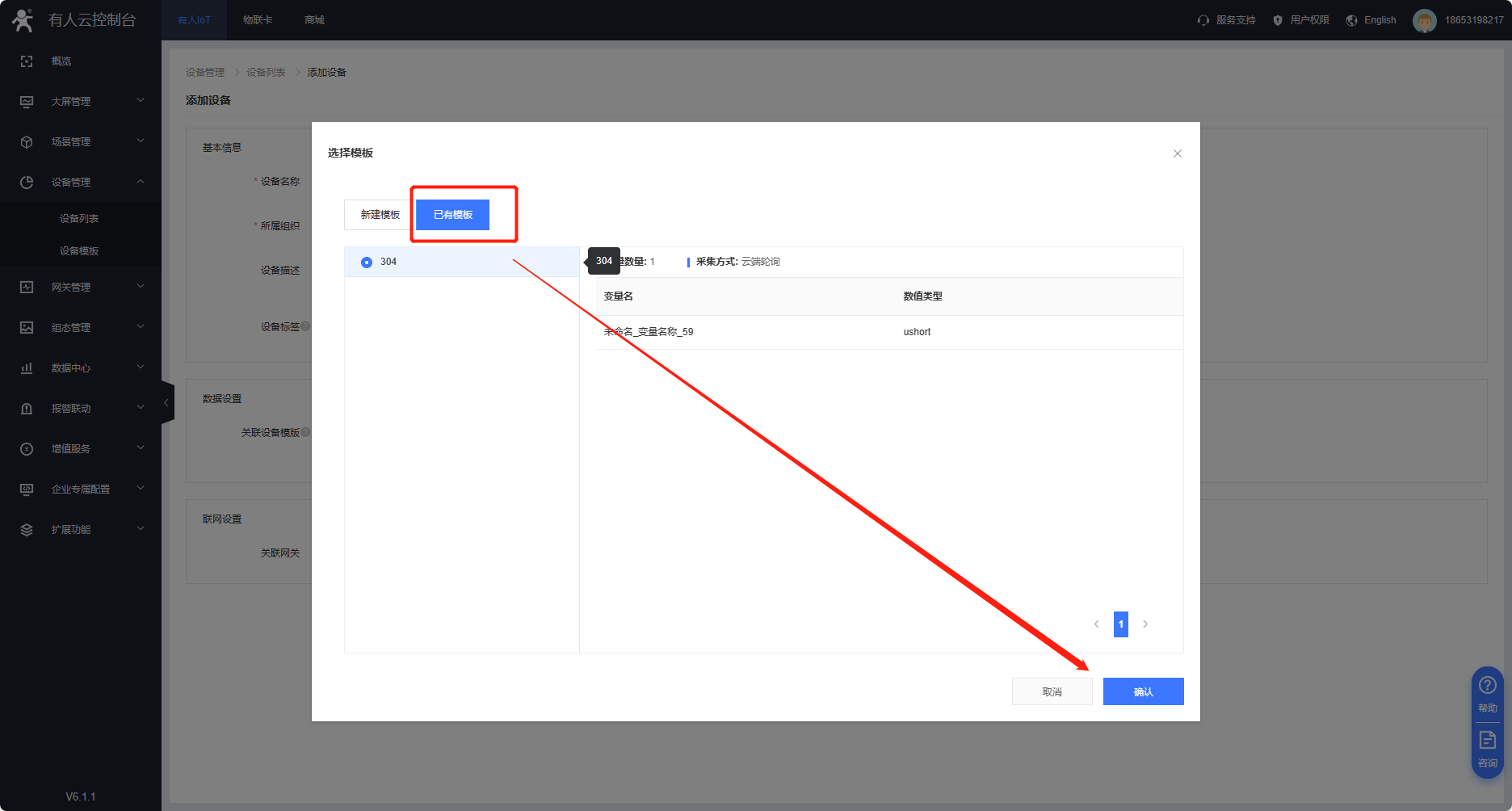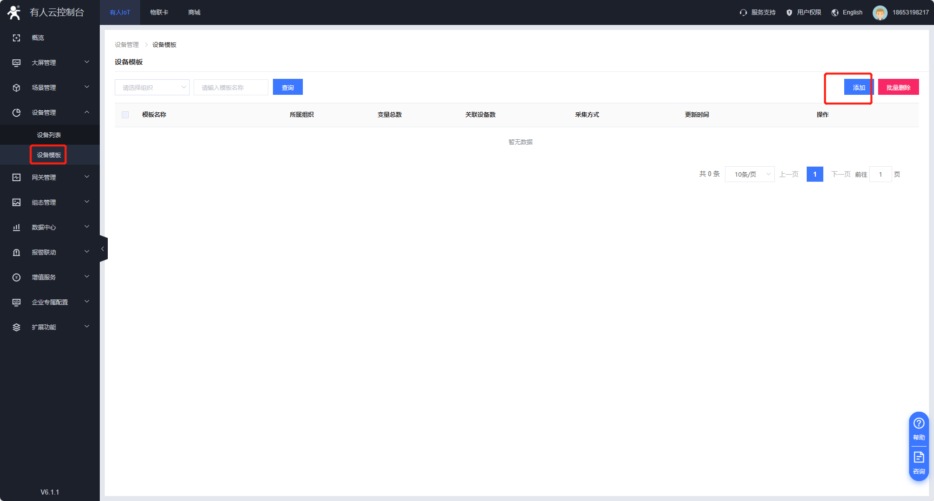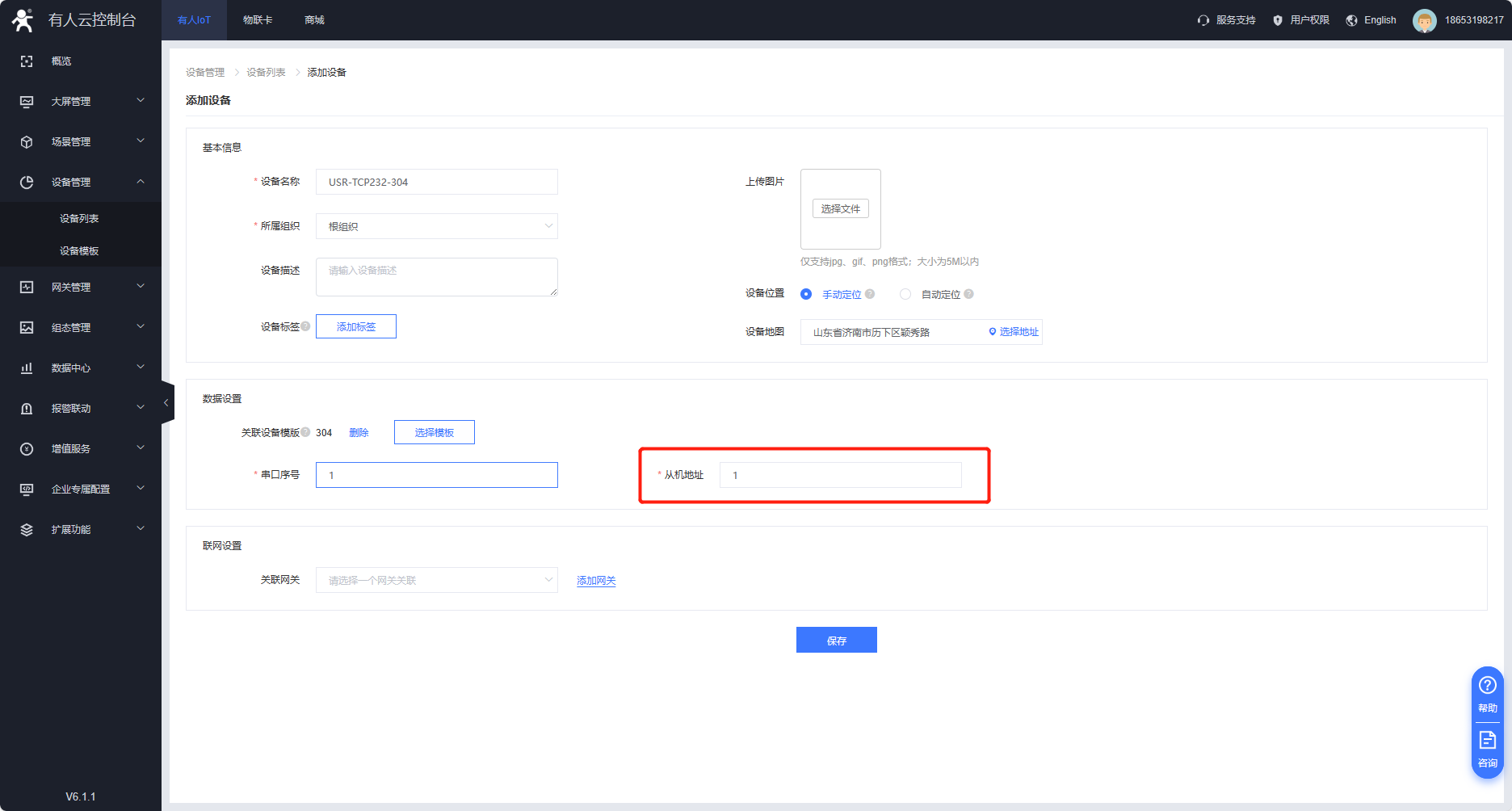 云平臺添加設備,在設備管理---設備列表--添加設備