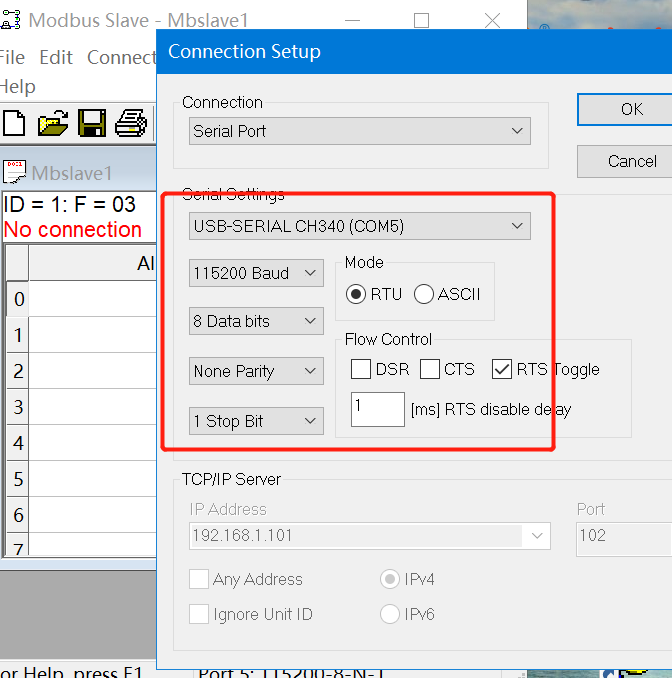 1、打開modbus slave軟件,選擇串口以及設置串口參數(shù)