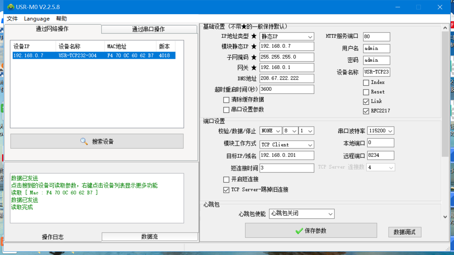 USR-TCP232-304設置軟件:http://wy2006.cn/Download/257.html