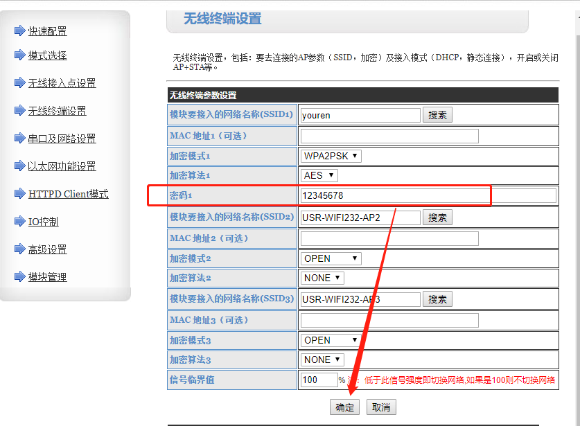 13、進入無線終端設(shè)置,搜索要連接的WiFi,選中以后點擊確定,輸入密碼,設(shè)置完成后同樣需要點擊確定