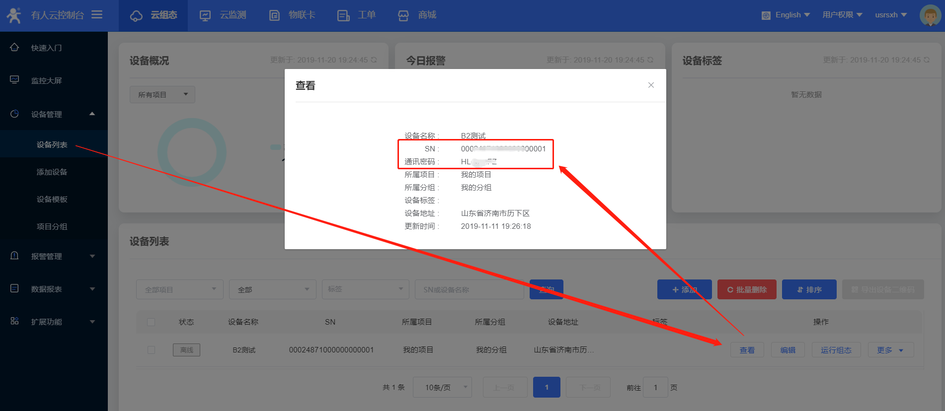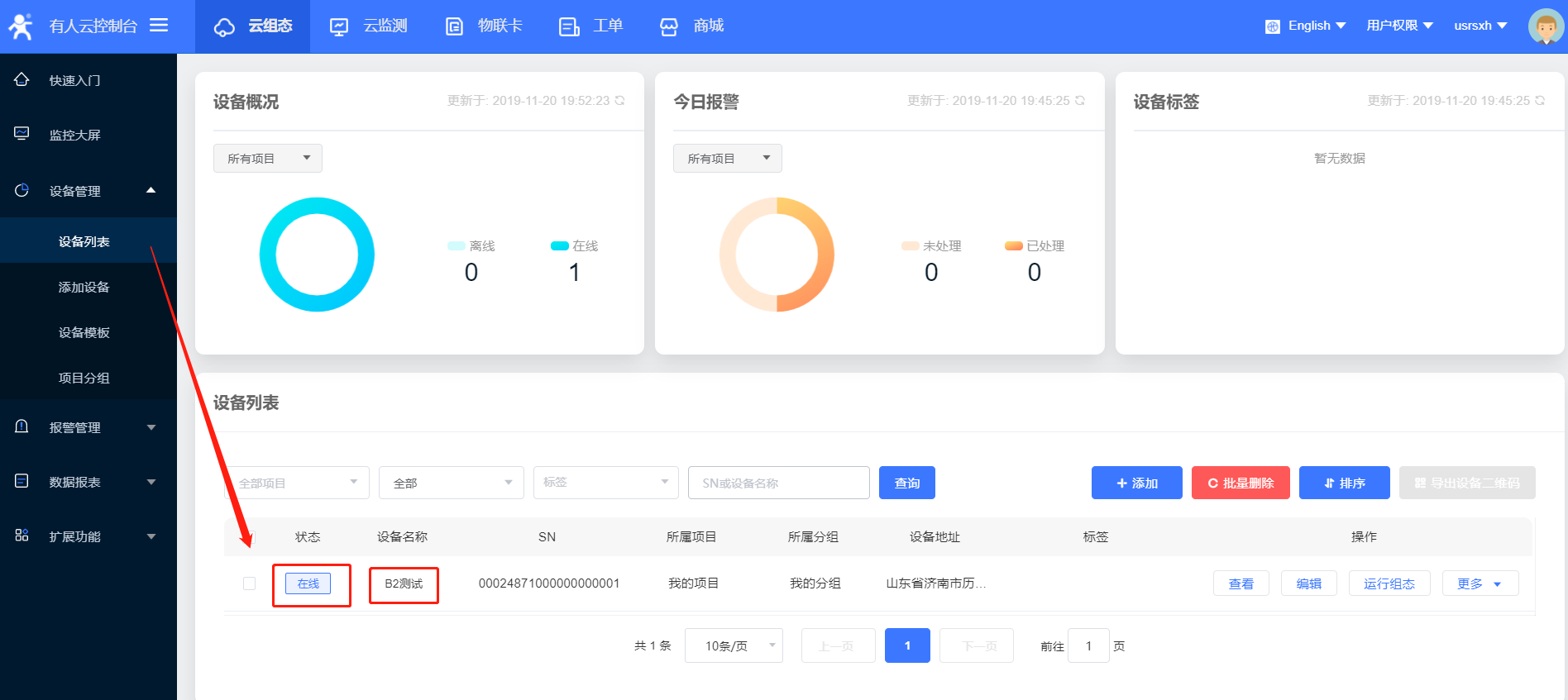 17、設(shè)置完所有的參數(shù)要重啟設(shè)備,稍等一會,在有人云界面,您會看到設(shè)備已經(jīng)上線
