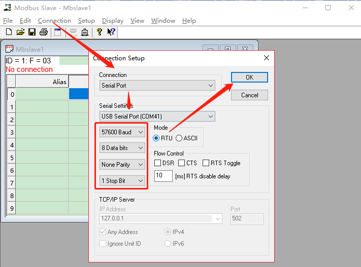 18、打開modbus軟件,點擊連接。選擇串口com41(B2的串口用usb轉(zhuǎn)232接到電腦上的),串口參數(shù)要和B2一致。