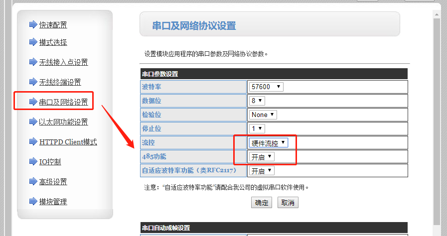注:若是B2連接485串口線,使用485串口線時, 需要現(xiàn)將模塊的打開485功能,可在內(nèi)置網(wǎng)頁或AT指令配置AT+FUDLX開啟485功能,該命令使能或禁止 485 控制功能,默認 RS485 是關(guān)閉的,485 控制引腳為 RTS。該命令設(shè)置后恢復出廠設(shè) 置生效。 AT+UART配置硬件流控,重啟生效,指令詳情可看產(chǎn)品軟件設(shè)計手冊AT指令詳情部分。
