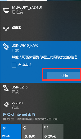 2. 電腦連接W610的wifi信號(hào),會(huì)自動(dòng)獲取一個(gè)10.10.100.xx的IP地址;
