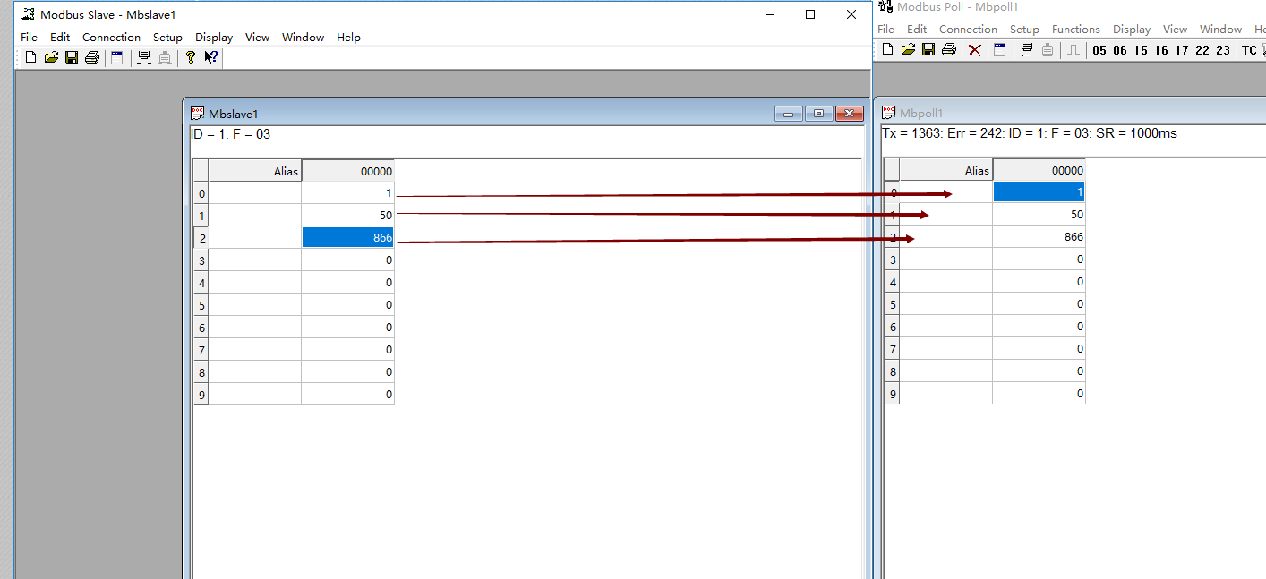 10、打開modbus poll和modbus slave軟件,分別設(shè)置參數(shù),選擇modbus tcp/ip協(xié)議,然后連接W610的端口和ip;