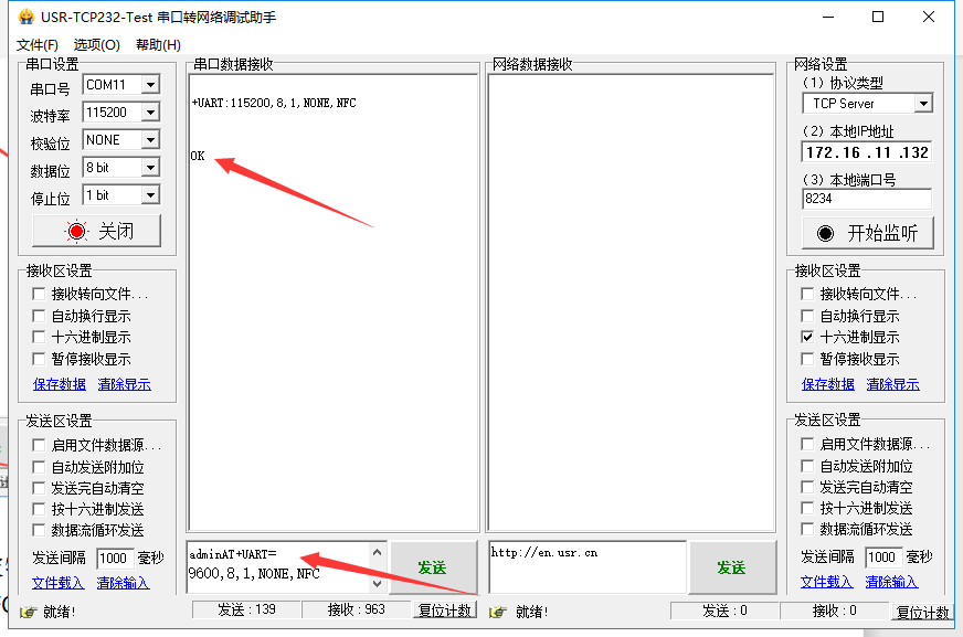 adminAT+UART=9600,8,1,NONE,NFC,修改成功之后模塊會返回ok。