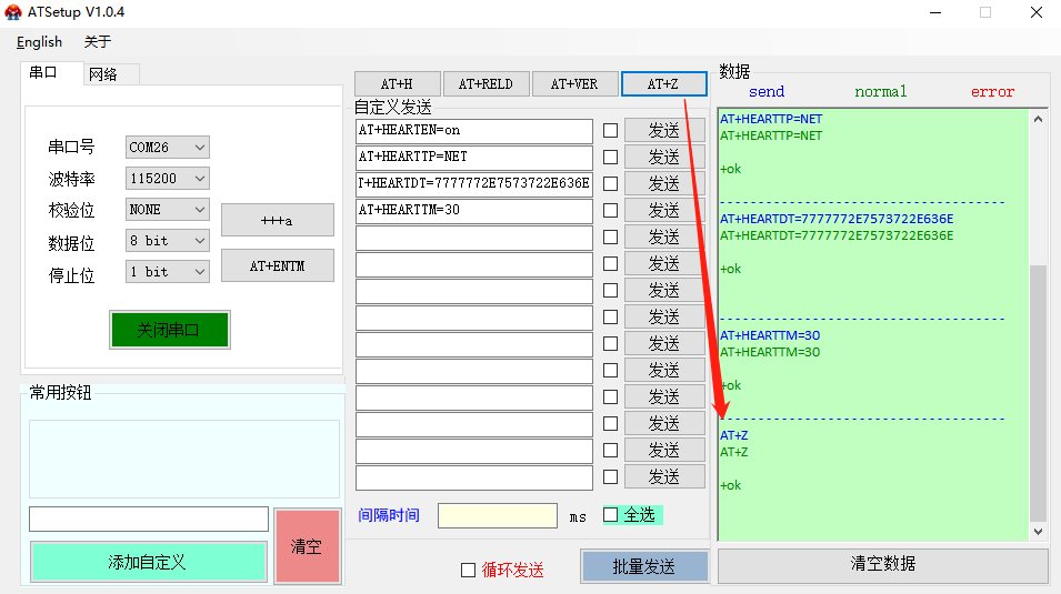 f. 配置完成,AT+Z或者斷電重啟模塊使參數(shù)生效。