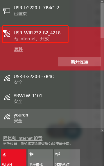 · WIFI串口服務(wù)器默認的SSID為:USR-WIFI232-B2_XXXX:(XXXX是WIF模塊MAC的后四位)