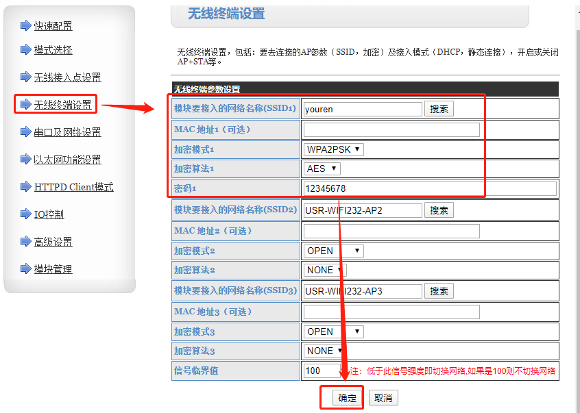 · WIFI串口服務(wù)器加密方式默認為:open,none;