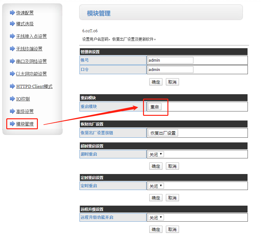 1. 電腦連接模塊的WiFi,輸入10.10.100.254進入配置網(wǎng)頁配置模塊