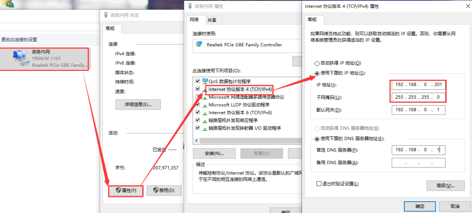 2. 給電腦設(shè)置靜態(tài)IP,要與510的IP在同一個(gè)網(wǎng)段.設(shè)置——網(wǎng)絡(luò)和共享中心——更改適配器設(shè)置——右擊屬性——Internet協(xié)議版本4
