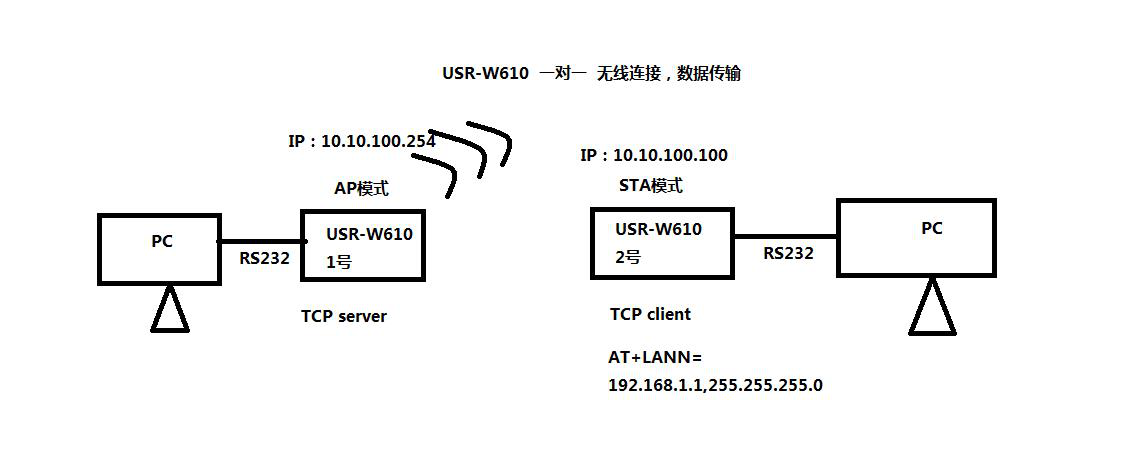 2號USR-W610設(shè)置STA模式,去連接1號W610的wifi。工作模式設(shè)置TCP client。